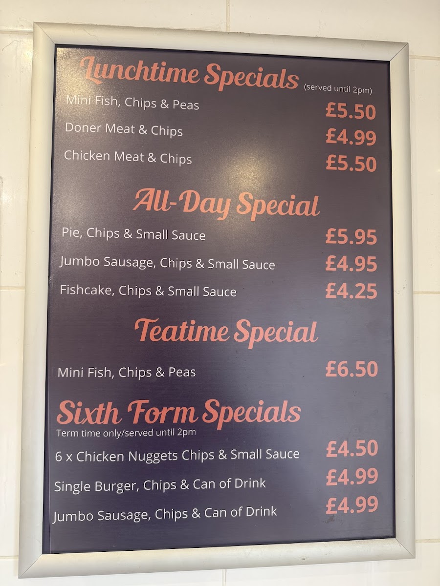 The menu at Bourne Fish N Chips offers a classic and satisfying selection of British favorites, with Fish and Chips taking the spotlight. Known for its crispy golden batter and perfectly cooked fish, this dish is a must-try for anyone visiting the restaurant. The fish is tender and flaky, complemented by a generous portion of hand-cut chips that are crisp on the outside and soft on the inside. The restaurant also serves a variety of other fried delights, such as the Scampi and Chips, which features succulent breaded scampi served with the same signature chips. For those seeking a lighter option, there is a tasty Grilled Fish choice, offering a healthier alternative without sacrificing flavor. Side dishes like Mushy Peas and Hush Puppies pair wonderfully with the main courses, adding a comforting touch to the meal. The portion sizes are generous, ensuring that diners leave fully satisfied. Whether you're craving a traditional takeaway or a comforting meal in a cozy setting, Bourne Fish N Chips delivers a delicious and memorable experience.